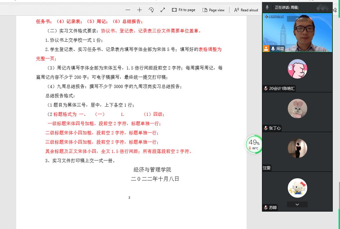 为了保证2020级会计专业顶岗实习工作的顺利开展,大数据与会计教研室于2022年10月12日召开了顶岗实习动员大会。因疫情原因,本次大会采取线上会议的形式。大数据与会计专业各指导教师、辅导员韩琦坤老师、2020级会计专业学生参加了本次大会。