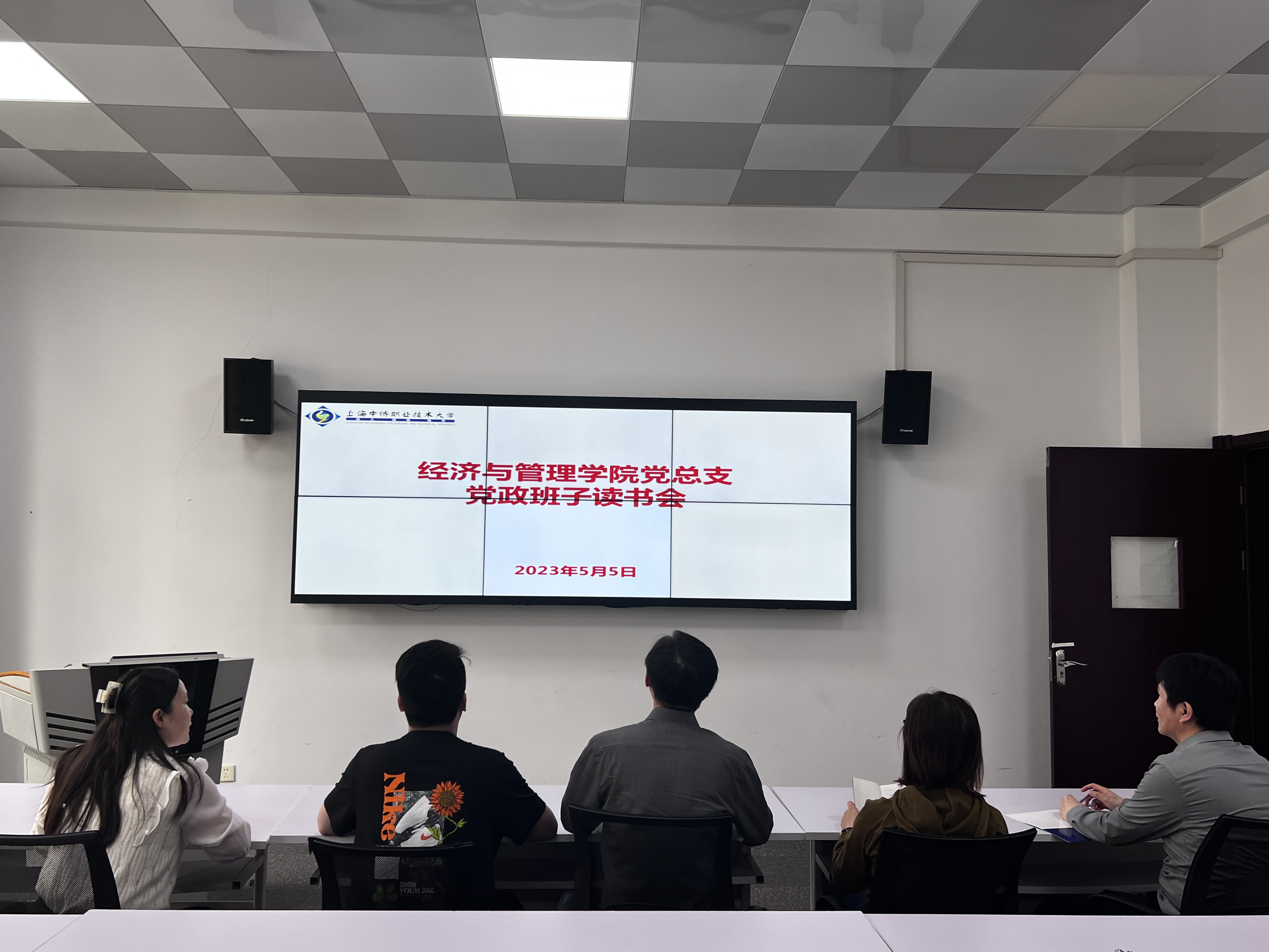 2023年5月5日经济与管理学院怀着对党章的热爱,学院党政领导班子在3号楼206开展了读书会学习新党章。本次读书会由杨慧老师主持,学院院长、书记、副院长等党政领导班子成员积极参与读书会,认真学习新党章。