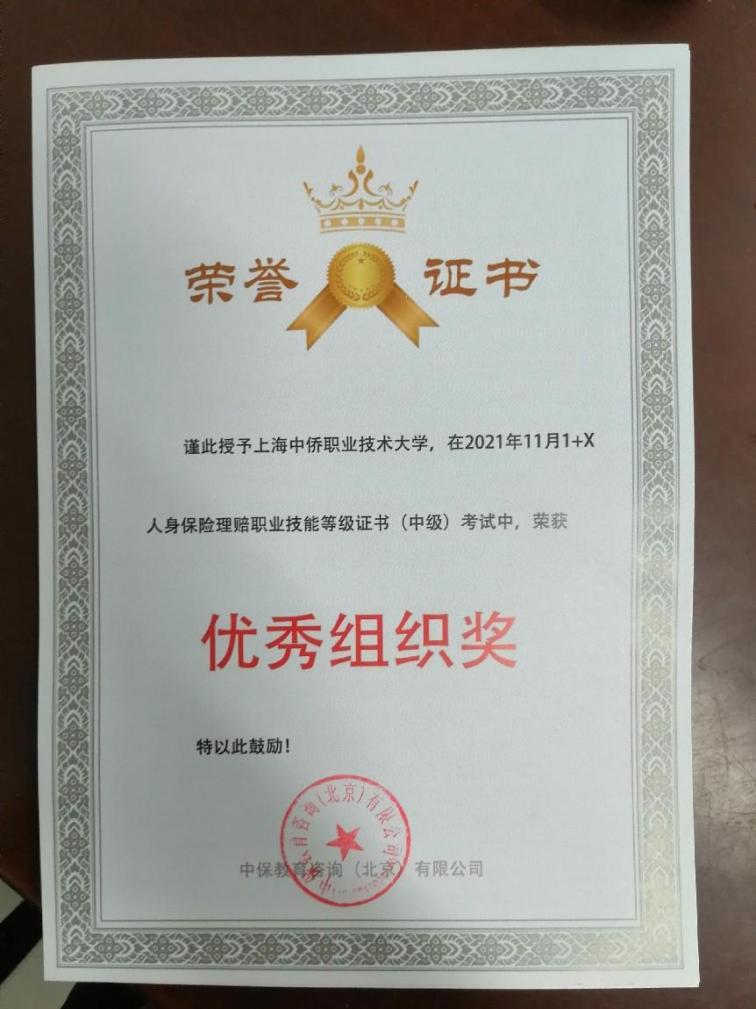 上海中侨职业技术大学认真贯彻国务院《国家职业教育改革实施方案》文件精神,积极推动“1+X”证书制度试点工作,在经济与管理学院金融服务与管理专业开展“1+X人身保险理赔职业技能等级证书”试点。学院将证书培训内容与学历教育课程有机融合,统筹安排教学内容与实践场所,确保教学形式与评价方式、1+X证书培训与专业教学过程一体化。
