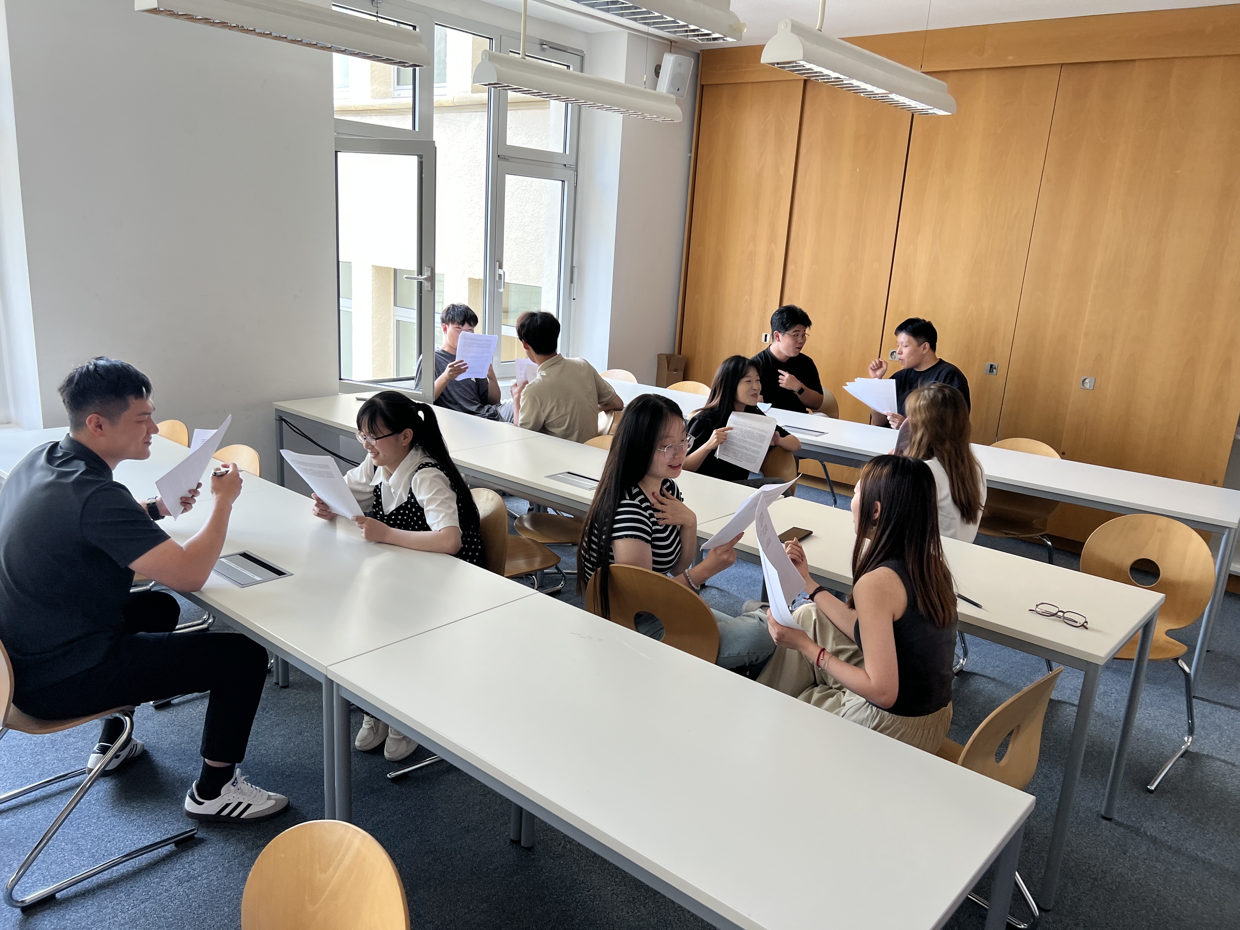 在德国,学校非常注重学生的自主学习和独立思考能力培养,学生们被鼓励提出问题、发表意见,并参与讨论与合作,有更多的自主选择权和决策权。因此,我们所认为的枯燥乏味的中西方文化差异的讲座,以workshop的形式展开。同学们积极参与、热情高涨,在一轮又一轮的掷骰子游戏中,感受到不同国家不同文化之间的差异,同时也意识到人一旦进入到一个新的文化环境,会发现很多规则可能会改变,而我们能做的只有适应它或者尊重它。