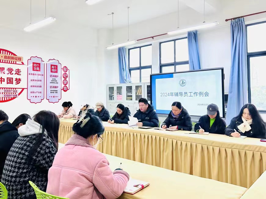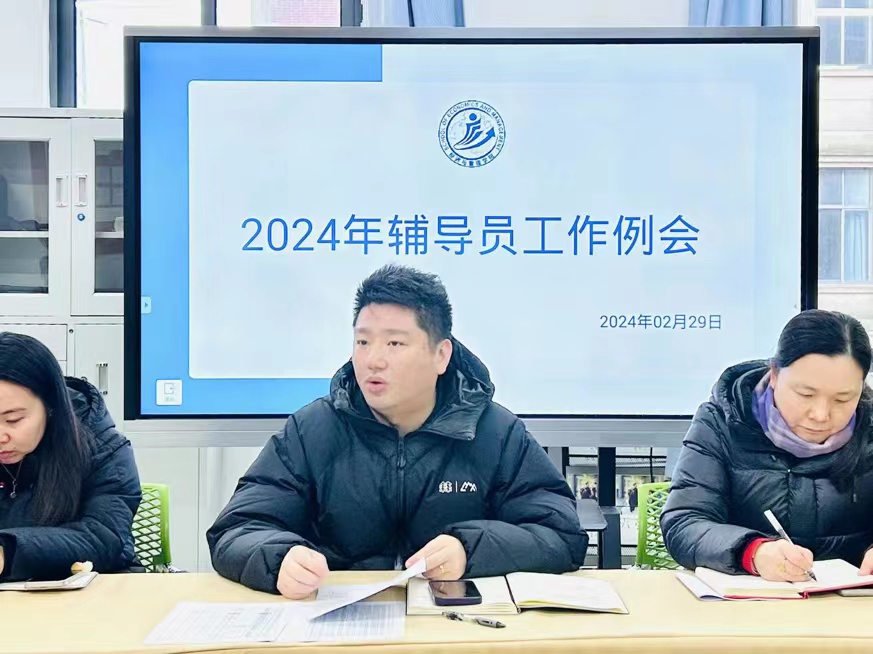 02月29日13:00,经济与管理学院在4号教学楼201室召开2024年辅导员工作会议,本次会议旨在做好新学期学生返校工作,并部署新学期学生工作。出席本次会议有经济与管理学院党总支书记杨慧老师和党总支副书记郭骏老师,学院专兼职辅导员参会,会议由郭骏老师主持。