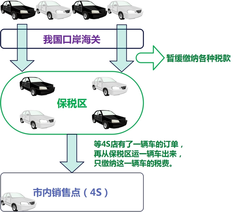 如果能合理利用保税区或保税仓库,就能大大减少进口车企的资金占用,方式是10辆车到港后,先以保税方式运入我国的保税区存放,这样可以先不用一次性缴纳高额税款。然后市内的销售点有了一辆车的订单后,再从保税区里运一辆车出来,交一辆车的税费即可。比起前面的传统进口做法,利用保税区的模式把一次性缴纳完税费转变为分批交税模式,大大减轻了进口企业的资金占用。如果从另一个角度来思考,原先企业一次进口10辆车,现在可以一次进口15辆甚至更多了。