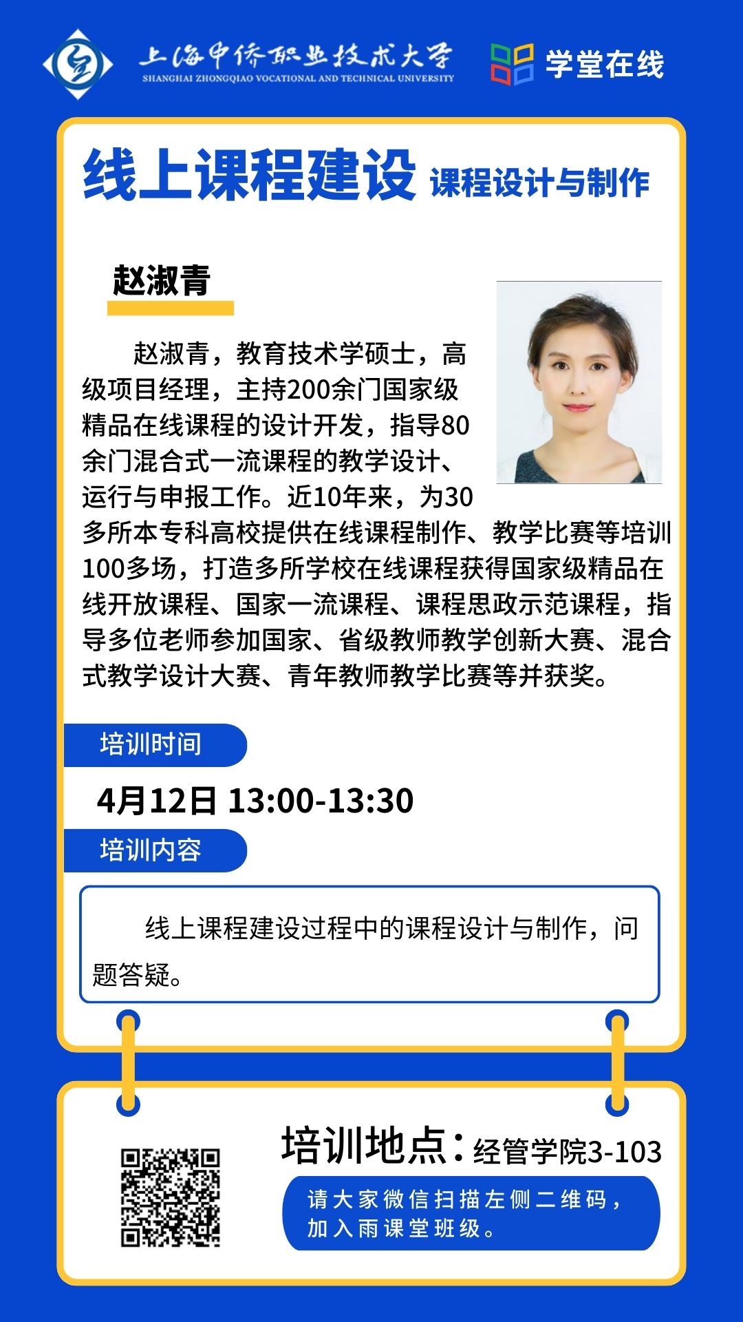 为更好响应国家教育数字化战略行动,有效推动实现教育数字化转型的目标,经济与管理学院邀请校企合作单位北京慕华信息科技有限公司,4月12日前来我院开展智能教学工具“雨课堂”工具应用和线上精品课程慕课建设培训,我院副院长范海燕教授、党总支书记杨慧副教授、经管学院各专业教师代表参会,会议由金融科技应用本科专业主任黄侃梅老师主持。