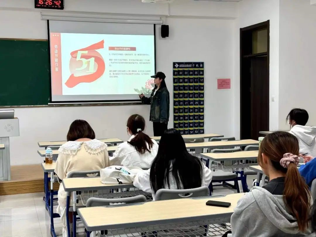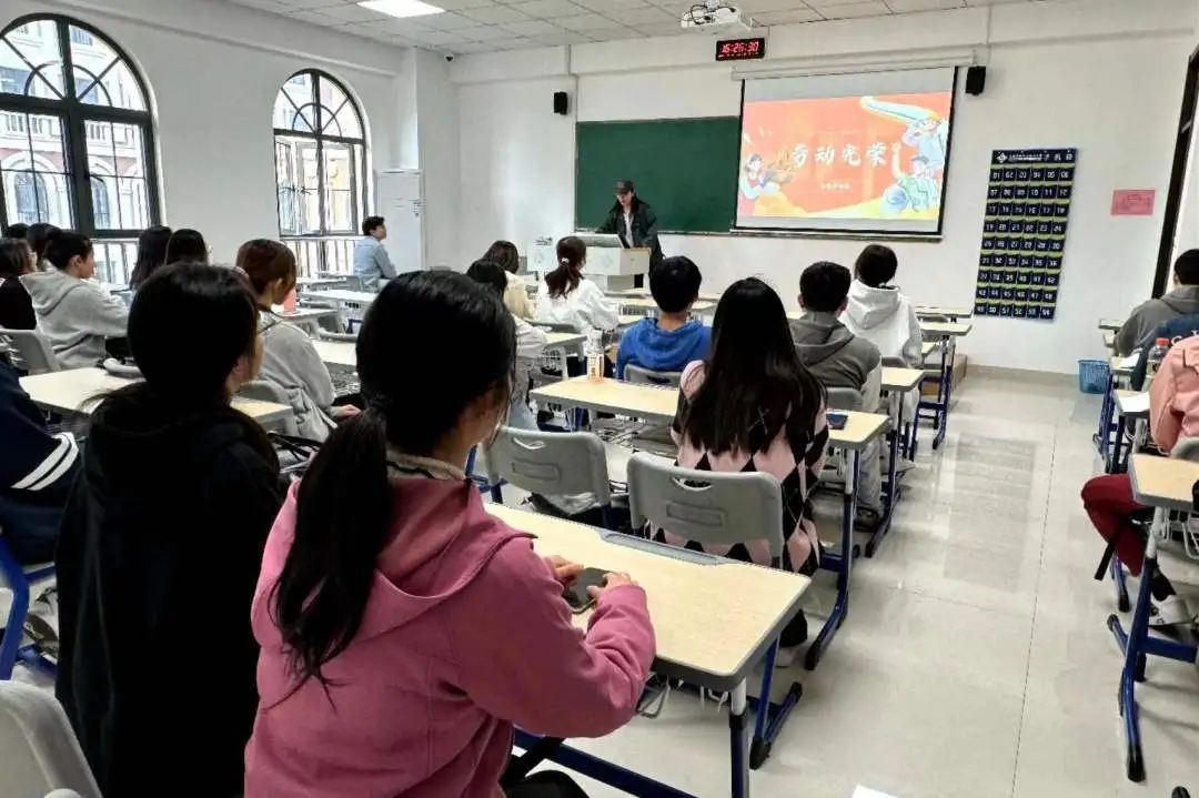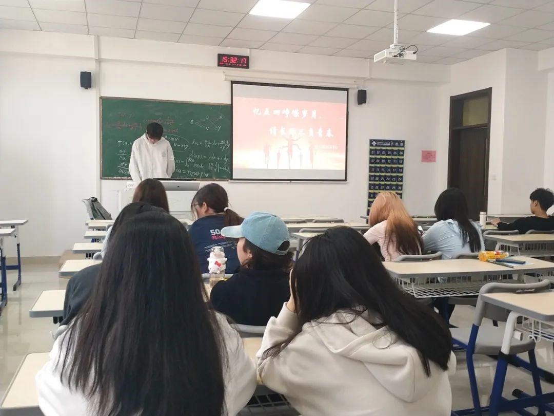 通过知识竞赛、团歌合唱和团徽合影等形式,让同学们在参与中感受团结的力量,激发爱国热情。在竞赛开始前,团支书先给大家介绍了五四运动的基本知识,让同学们为竞赛做好充分的准备。五四知识竞赛是一种以五四运动为主题的知识竞赛活动,旨在通过竞赛的形式,让同学们深入了解五四运动的历史背景、意义和影响,增强爱国主义情怀。知识竞赛的题目涵盖了中国近现代史、共青团历史以及时事政治等多个方面,考验着同学们的知识储备和思维敏捷性。每当问题一出,同学们积极踊跃,渴望展示自己的所学。这不仅是一场知识的比拼,更是一次对五四精神的深刻领悟。