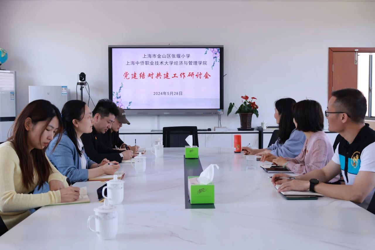 为深入学习贯彻党的二十大精神与习近平总书记关于党纪学习教育的重要指示,准确把握职业教育与基础教育双方开放共享的基层党组织建设新格局,坚持党建引领、凝聚共识、推动发展、合作共赢的发展共识,5月28日,上海中侨职业技术大学经济与管理学院和张堰小学开展党建结对共建工作研讨会,张堰小学党支部书记、校长施慧丽,党支部副书记吴俐斌,副校长张熹、经济与管理学院党总支书记杨慧副教授、党总支副书记郭骏,学生支部书记邵静,党总支宣传委员张玉帆共同参会。