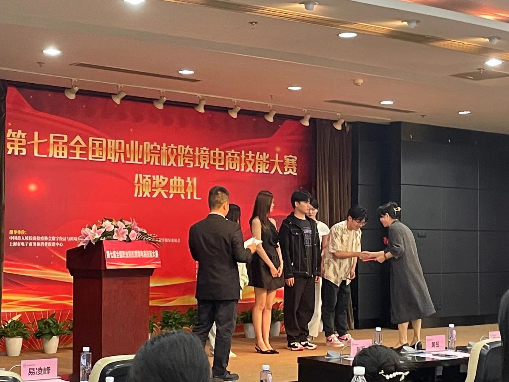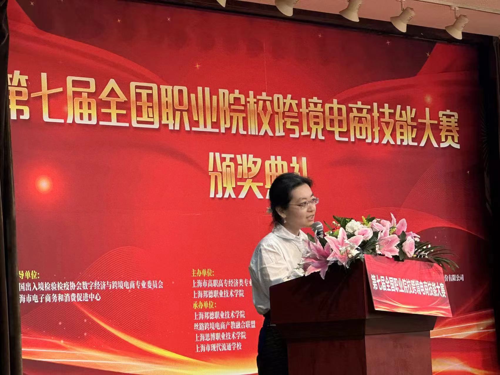 6月7日下午,在刚刚结束的第七届全国职业院校跨境电商技能大赛中,上海中侨职业技术大学经济与管理学院国际商务专业获奖的指导教师和参赛学生团队代表,参加了于上海亚龙国际广场举行的大赛颁奖典礼。