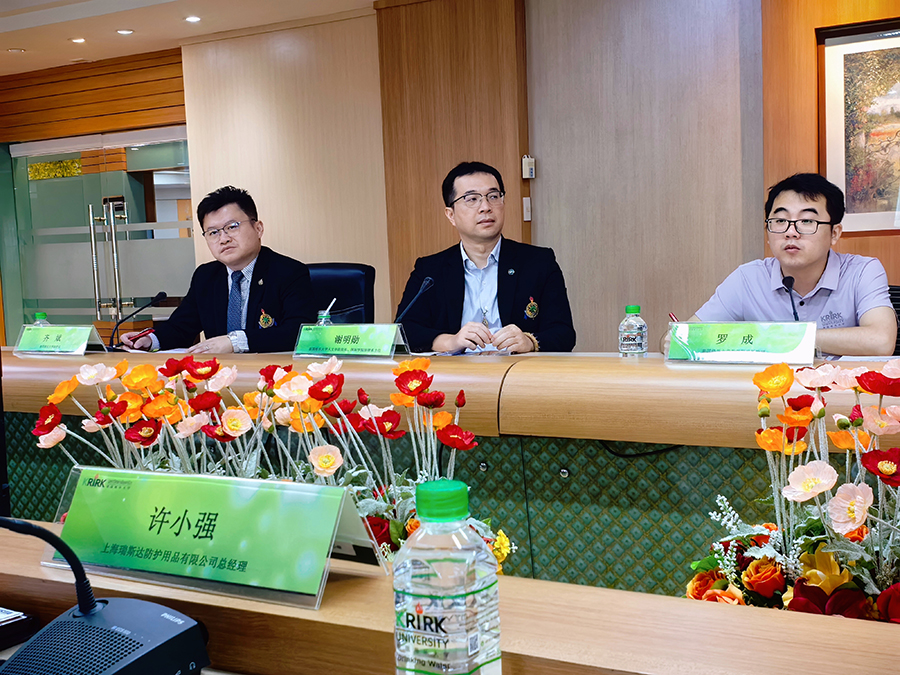 接着,瑞斯达许小强总经理发言,许总分享了瑞斯达的概况与校企合作情况。他介绍,瑞斯达成立于1998年,专注于创新型手部防护产品开发,提供一站式手部防护解决方案,拥有独家专利的手套设计和涂层技术。目前,瑞斯达已拥有70余项国际、国内专利与自主研发的配方及生产工艺等核心技术,他期待通过“产业+高校”的方式,推进产业化落地。目前,瑞斯达正在进行全球供应链布局与全球营销网络的开发建立,在全球品牌推广、广告宣传以及海外基地建设、当地营销网络建设方面,与格乐大学有诸多合作机会与空间。
