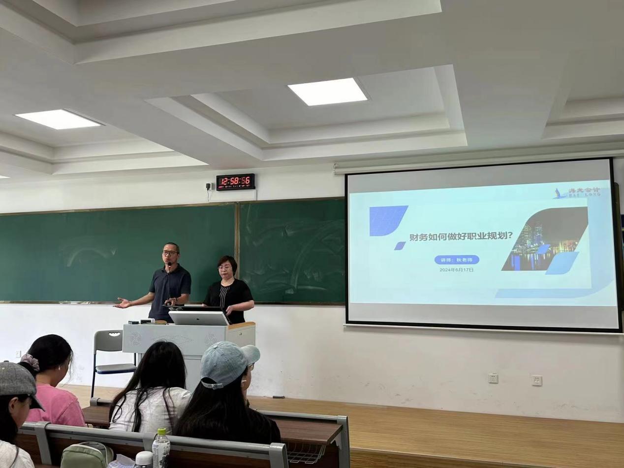 在职业规划报告会中,来自企业的秋老师首先向大家简单介绍了自己的职业生涯经历,随后秋老师从企业组织架构、部门职责、岗位职责给我们介绍了企业财务组织与岗位设置,结合自身从业经历列举了一些实例,使我们深刻的意识到财务人员在企业发展中所能起到的重要作用。秋老师从职业意识、职业心态、职业道德、职业行为、职业技能五个方面阐述了职业素养的内容,并就如何提高职业素养提出了多方面的建议,使大家受益匪浅。