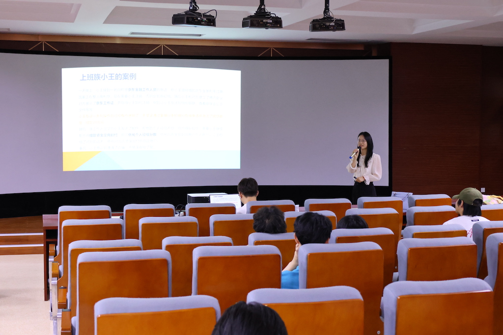 下半场由中国银行股份有限公司的常佳旻老师介绍中国银行的业务范围、发展历程以及其在国际金融市场中的地位。同时,她还通过生动有趣的案例分析,向同学们讲述了征信的重要性以及如何防范金融行业的各种诈骗。
