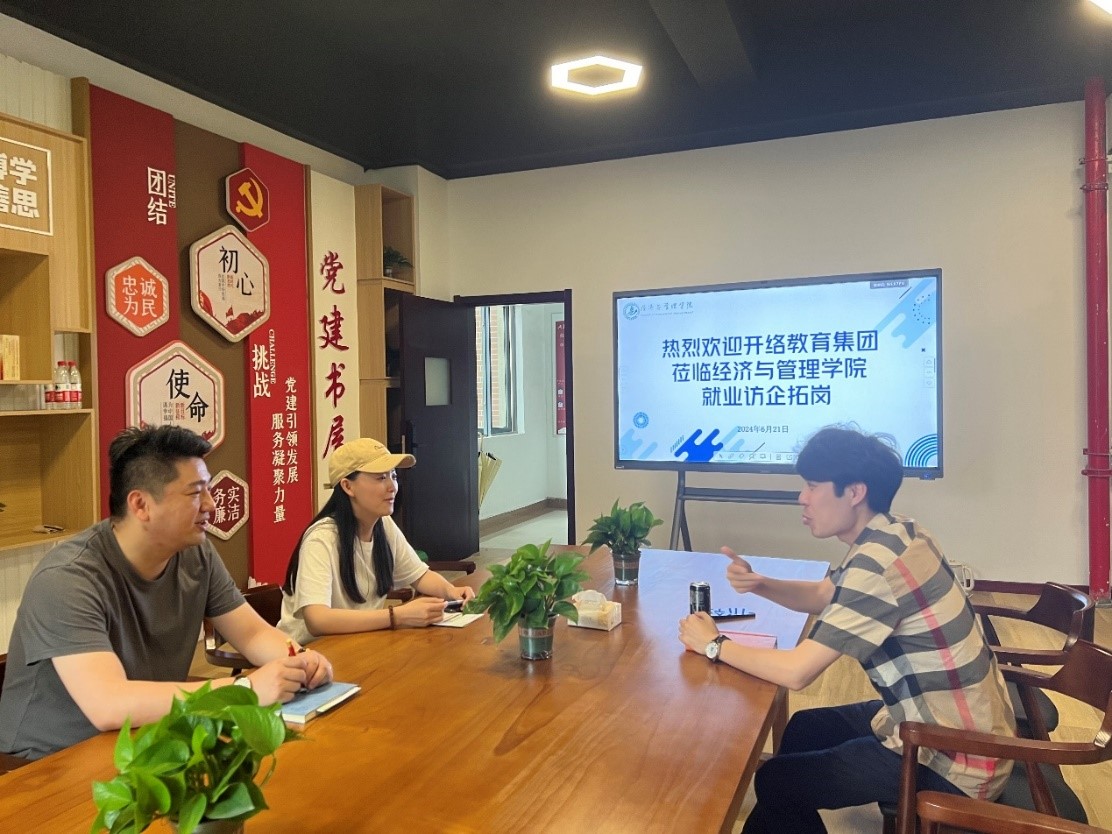 近日,经济与管理学院党总支副书记郭骏及学生支部书记邵静热情接待了开络教育集团总经理马总。双方就如何深化校企合作、开展访企拓岗促就业专项行动进行了深入研讨,此次访企拓岗专项活动旨在进一步深化校企合作,促进毕业生高质量就业,共同开创人才培养与就业工作新局面。