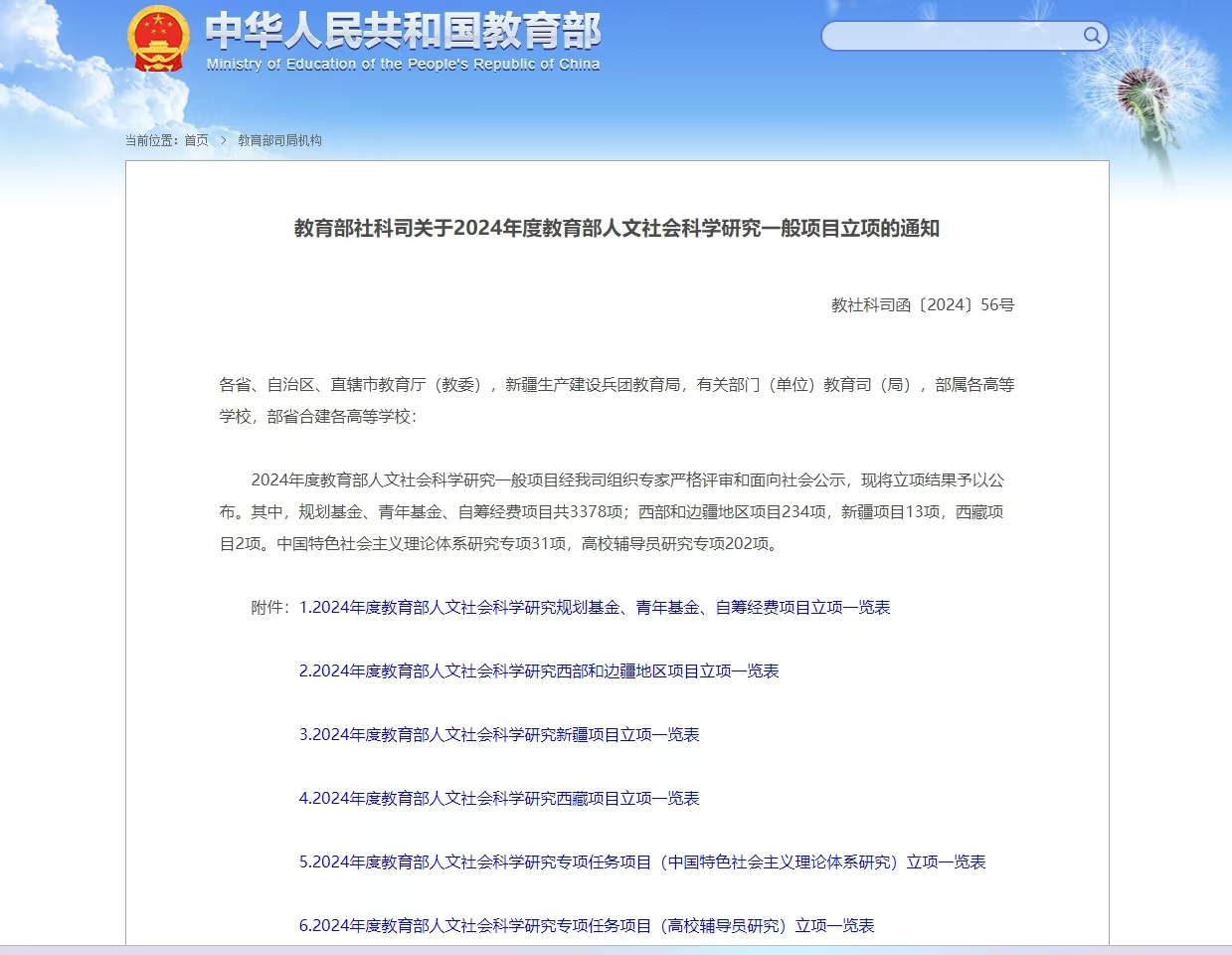根据《教育部社科司关于2024年度教育部人文社会科学研究一般项目立项的通知》,上海中侨职业技术大学经济与管理学院旅游管理专业陈灵萍老师主持申报的青年基金项目《城市生产空间中“新质意象”与游客感知的共情交互研究》获批立项资助(项目批准号:24YJCZH021)。