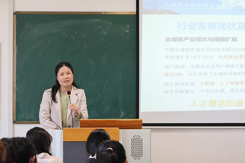 活动初始,俞老师深入浅出地介绍了全媒体产业的当前发展态势及未来趋势,详细阐述了本专业的人才培养目标、课程体系以及独具特色的培养模式。她鼓励同学们全面了解专业特色,明确学习目标,并寄语新生珍惜大学四年的宝贵时光,以积极向上的态度为梦想奋斗。