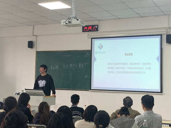 随后,耿昊裔老师结合当前行业趋势,深入分析了企业数字化管理专业的未来职业发展前景,鼓励新生们积极应对挑战,把握机遇。耿老师指出,随着数字化时代的到来,企业对数字化管理人才的需求日益增加,就业前景广阔。他鼓励同学们要紧跟时代步伐,不断提升自己的专业技能和综合素质。