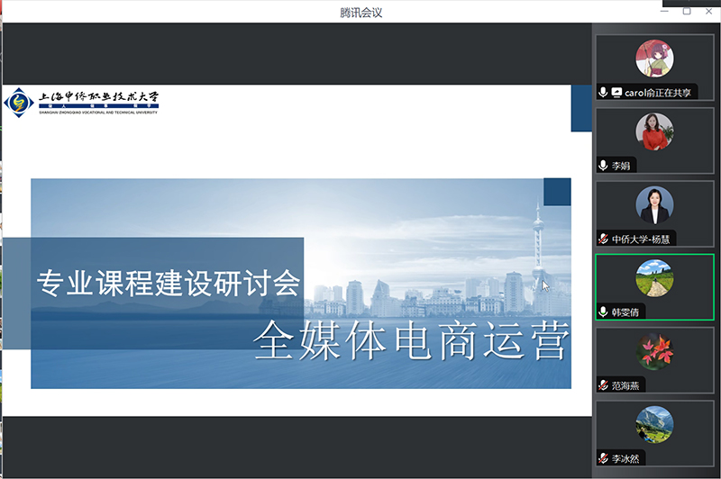 为进一步推动专业发展,深化课程建设与改革,10月18日晚,全媒体电商运营专业在线召开课程建设研讨会。本次会议由专业主任俞春英主持,经济与管理学院科研院长范海燕、学院党总支书记杨慧、院长助理李娟,专业教师韩雯倩、王佳佳、李冰然、陶斯佳共同参与。