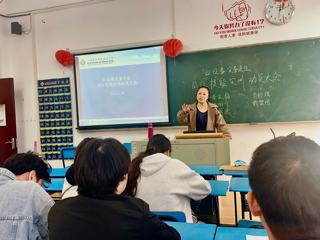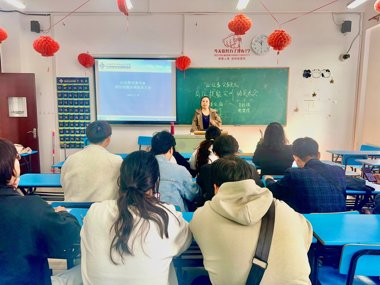 2024年11月7日,证券实务专业在3—513教室成功举办了2024年顶岗实习动员大会。本次会议由专业主任黄侃梅老师主持,全体负责指导顶岗实习工作的教师出席,旨在为即将步入职场的学生们提供实习指导和动员。