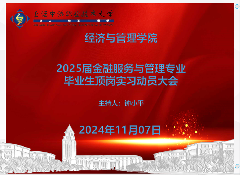 2024年11月7日,金融服务与管理专业在48号楼501教室召开22级学生顶岗实习动员大会,会议由专业主任钟小平主持,本专业9位实习指导教师、辅导员及22级金融服务与管理专业67位同学参加会议。