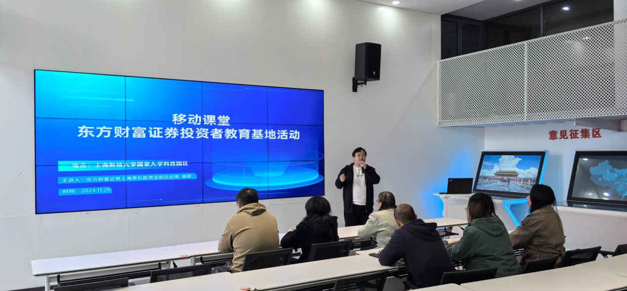 东方财富证券上海莘松路营业部总经理章群首先给大家做了东方财富证券股份有限公司的简要介绍及东方财富在投资者教育方面的工作,并通过动画展示墙生动展示了中国证券市场的发展历程。