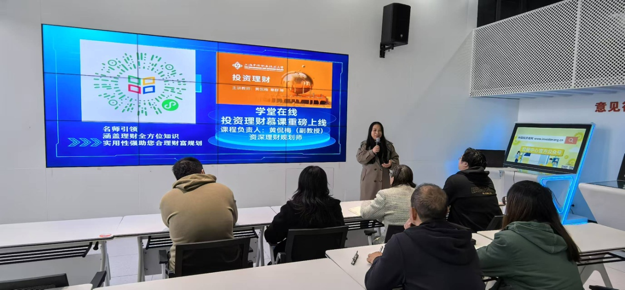 在随后的交流中,黄侃梅老师为企业及各位师生做了“投资理财”课程的分享。黄老师特别强调了投资理财规划与章经理分享的股票投资有明显的区别,同时分析了现实中投资理财认知不足导致的失败案例,强调了人生理财规划教育的重要性。并同东方财富证券公司商讨今后要校企共同参与社区人民大众的投资理财教育活动。