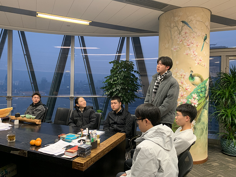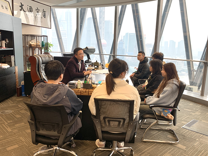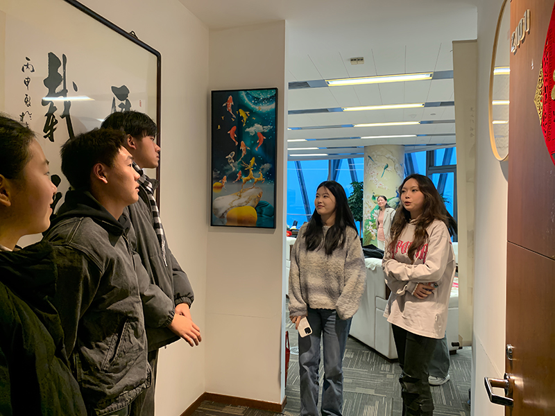 师生们在宽度网络科技公司负责人的热情接待下,开启了此次学习之旅。单位负责人简单介绍了宽度网络科技公司的发展历程、核心业务,使师生们了解到了行业前沿的实践案例与技术应用。借助国际港务大厦的优越地理位置,申老师给同学们讲述了中国共产党一大历史船型建筑共产党世界会客厅的来历,使同学们在欣赏上海北外滩繁华壮丽的风景的同时,深刻领悟到党的伟大精神与使命传承。