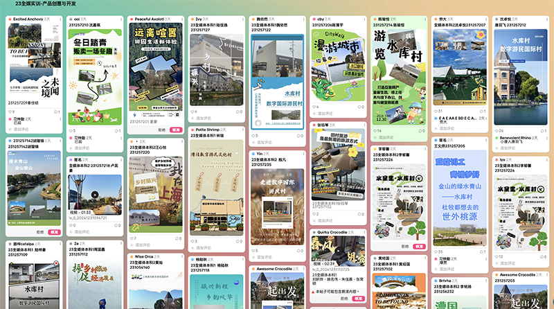 通过实地考察,学生对于目标对象有了较为深入的了解,并收获丰富多样的素材。在后续的实训课程中,大家正式进入了产品创意与开发、品牌策划方案制定的关键阶段。在俞春英、韩雯倩、陶斯佳、王倩倩等老师的悉心指导下,同学们积极运用所学知识,将脑海中的创意想法逐步转化为切实可行的实际方案与内容。经过反复推敲与完善,最终生产出了高质量的实训成果。