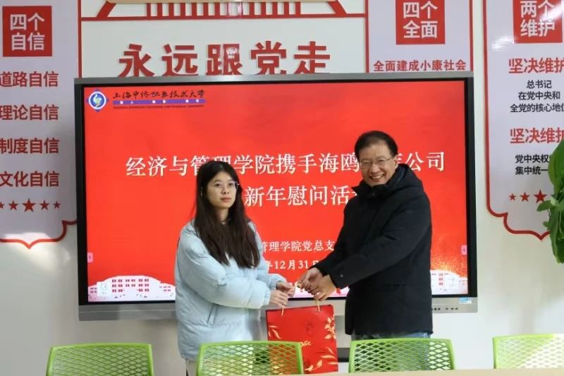 为深入学习贯彻党的二十届三中全会精神,凝聚基层支部党建合力,推动“我为群众办实事”实践活动走深走实,2024年12月31日,经济与管理学院和上海金山海鸥大厦酒店有限公司联合开展“党建共建、发挥合力、共赢未来”迎新春送温暖慰问活动。