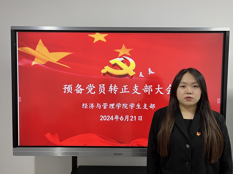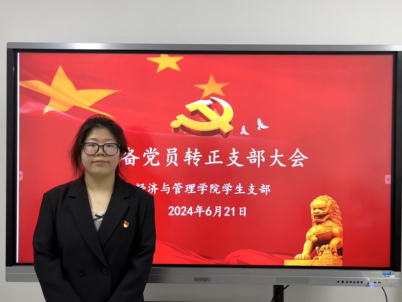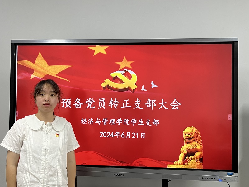2024年6月21日上午,经济与管理学院学生党支部在3号楼103会议室召开预备党员转正支部大会。会议由经济与管理学院学生党支部书记邵静同志主持。