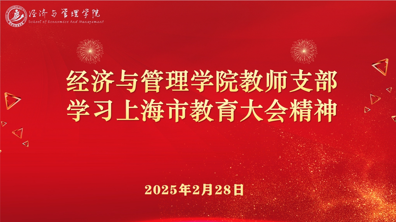 2025年2月28日,经济与管理学院教师支部召开学习上海市教育大会精神,会议由经济与管理学院教师支部书记杨慧老师主持。上海市教育大会于2025年2月14日举行,此次大会明确了要深入学习贯彻习近平总书记关于教育的重要论述和全国教育大会精神,以排头兵的姿态和先行者的担当,咬定目标、锐意改革,为加快推进教育现代化、建设教育强市、办好人民满意的教育而不懈奋斗。本次学习内容为聚焦办好人民满意的教育,大力提升教育公共服务的质量水平,进一步促进均衡布局、优质发展和聚焦弘扬教育家精神,大力建设党和人民满意的高素质专业化教师队伍,形成优秀人才争相从教、优秀教师不断涌现的良好局面。通过学习,每位老师都有各自的心得感悟。