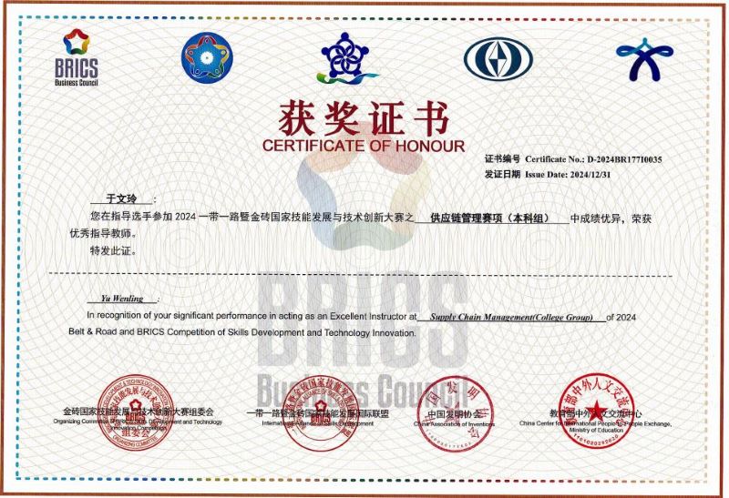 在此次大赛中,我校经济与管理学院现代物流管理专业斩获佳绩,不仅展现了参赛学子过硬的专业素养,更充分彰显了专业人才培养的卓越成效。这一成绩的取得,离不开于文玲、张雯雯两位指导老师的悉心培育与专业指导。她们以丰富的教学经验和深厚的专业造诣,为学生的成长提供了有力支撑,荣获“优秀指导老师”称号,此外,学校在赛事组织工作中表现出色,荣获“最佳组织奖”,为大赛的顺利进行贡献了重要力量。