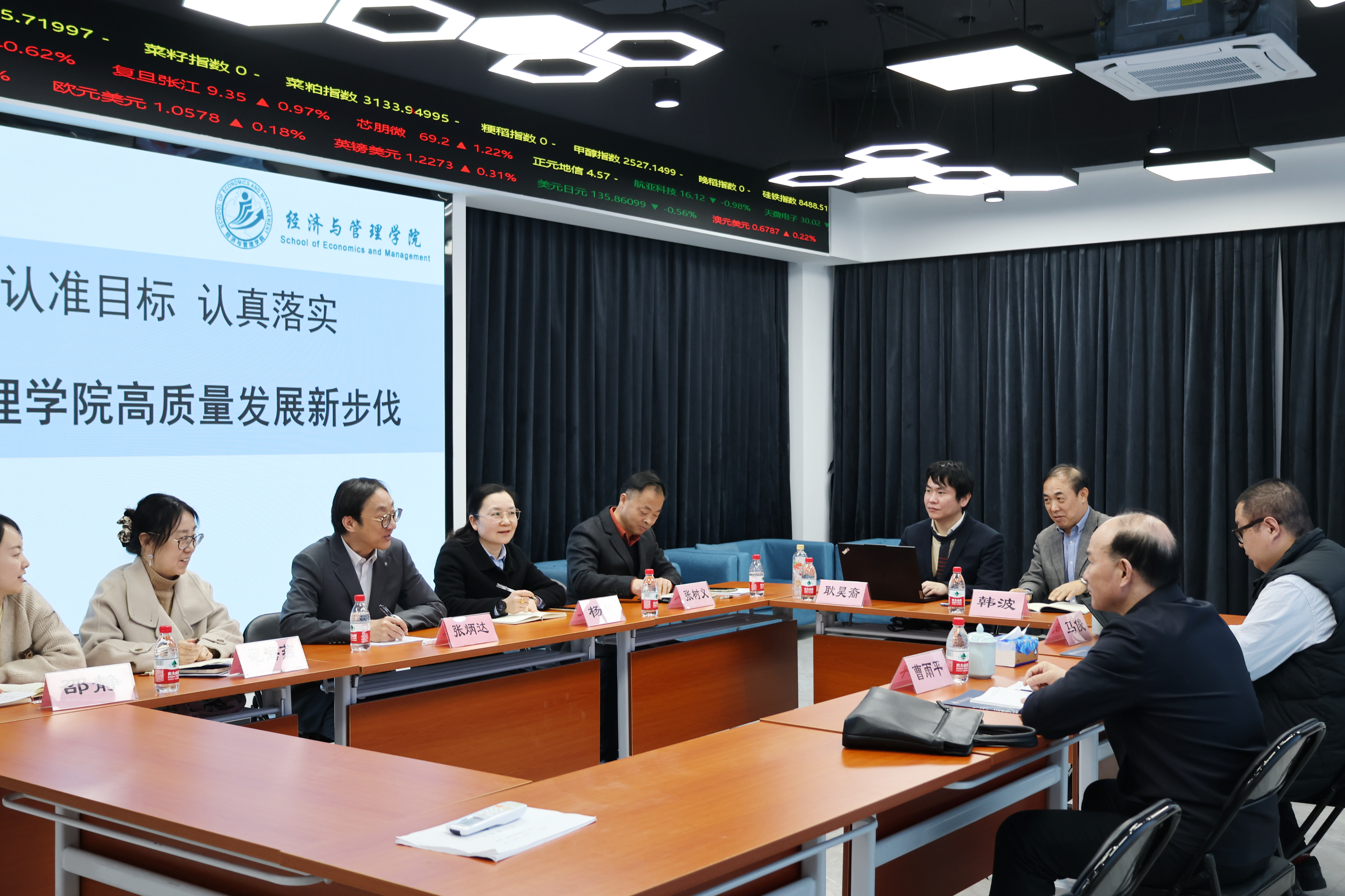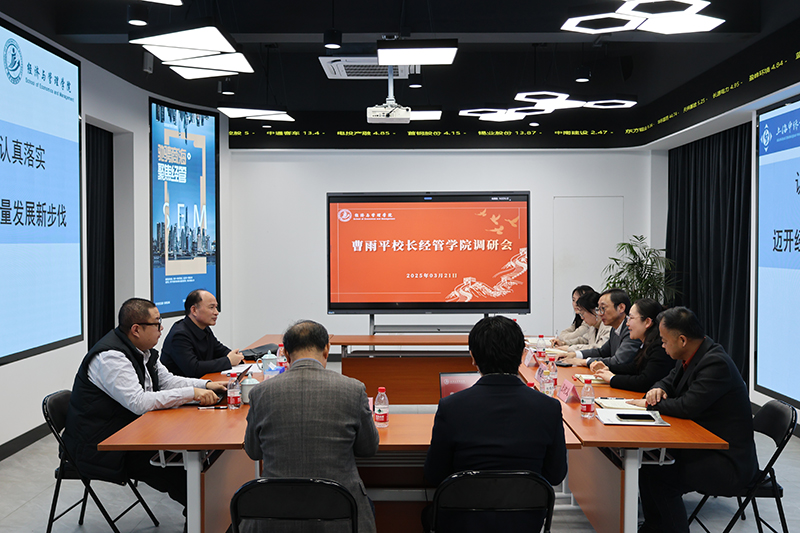 2025年3月21日,校长曹雨平、校党政办主任马俊莅临经济与管理学院调研指导工作。经济与管理学院院长张炳达、党总支书记杨慧、副院长张树义、副院长范海燕等参加调研会。