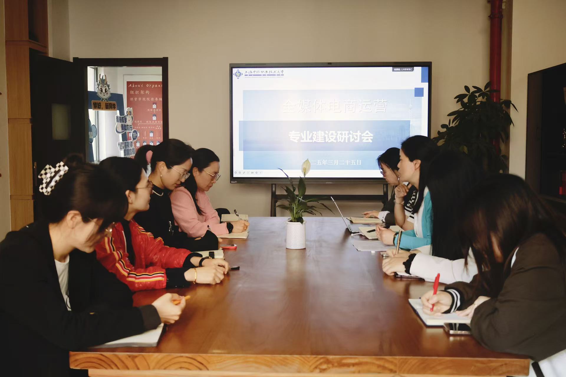 为适应数字经济时代发展需求,推动专业高质量发展,3月26日,全媒体电商运营专业在4号教学楼202会议室,召开专业研讨会。本次会议由专业主任俞春英副教授主持,科研院长范海燕教授、学院党总支书记杨慧副教授、全媒专业全体教师,以及23、24级全媒专业辅导员韩伟佳、邱曼老师共同参与。