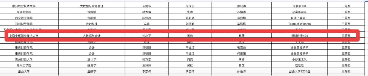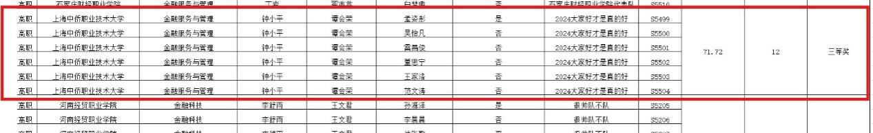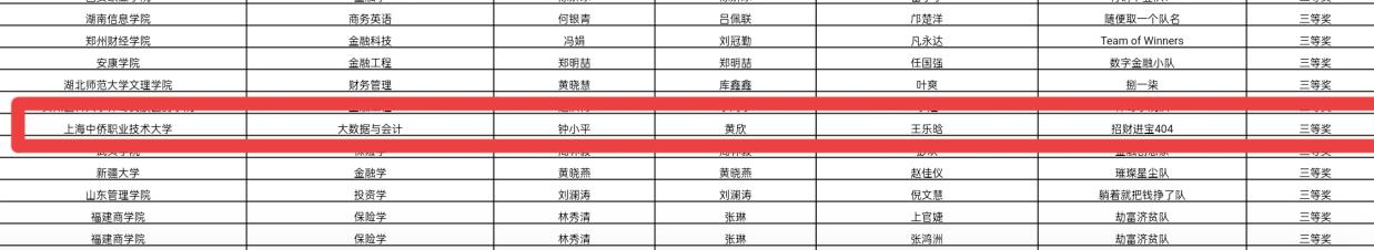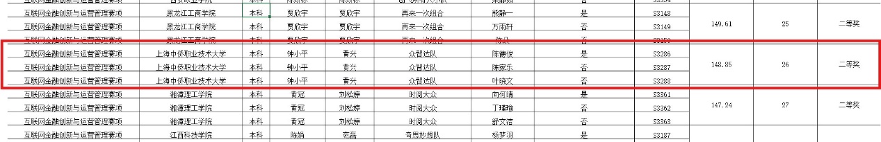 我校经济与管理学院金融服务与管理在专业主任钟小平老师的组织下,由黄欣、谭会荣、陈锐、江芸、唐波等六位教师组成的指导团队,通过为期2个月的备赛指导,最终助力我校代表队在2024年11月份取得了佳绩。