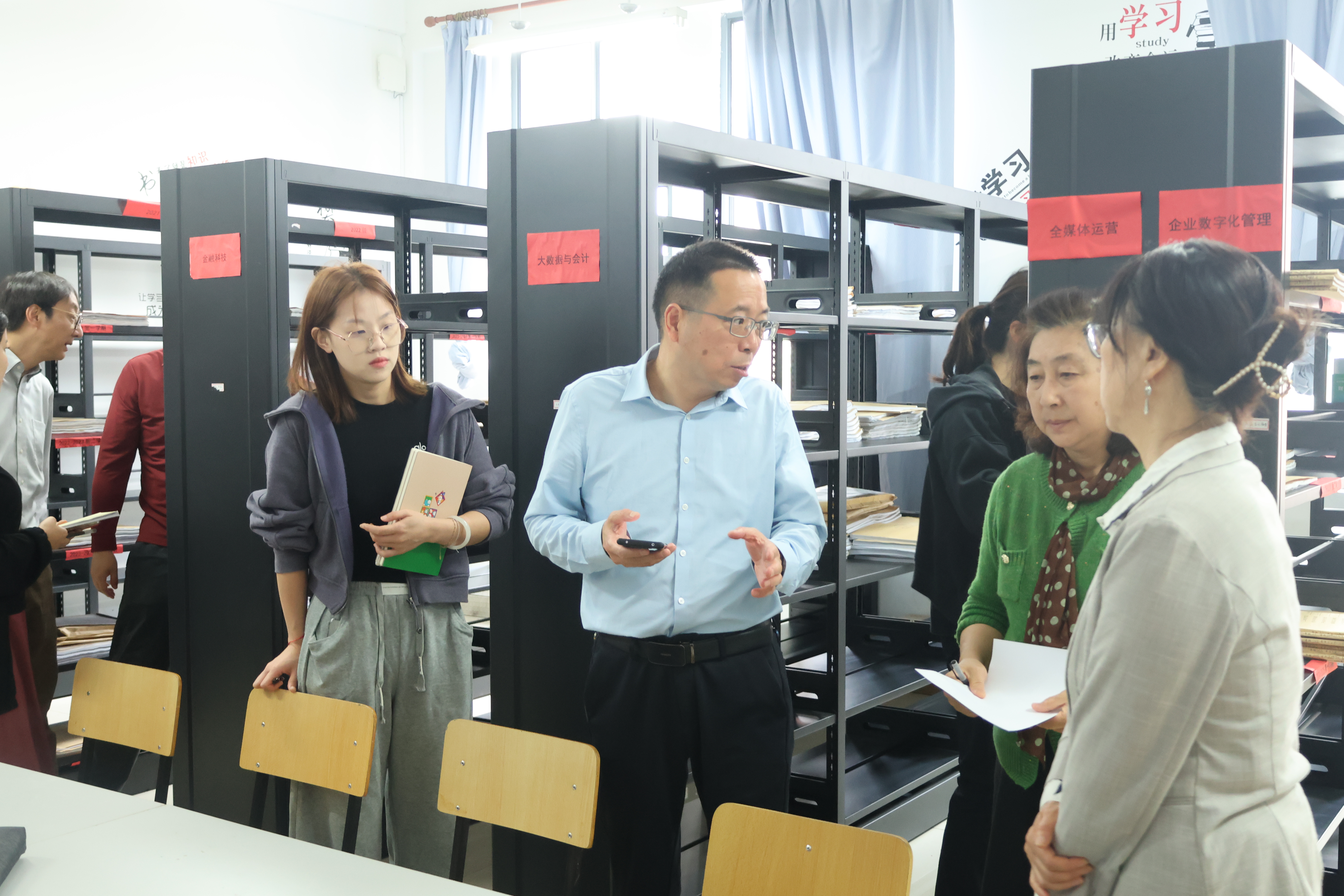 为全面保障教学质量,规范教学过程管理,根据学校统一部署,经济与管理学院于2025年4月9日至4月16日组织开展期中教学检查工作。4月22日上午,学校教务处副处长柳伟和刘英语、教务处专员戴小波、教师发展中心主任朱伟文、规划与质量管理处韩连民以及教务处和各职能部处相关老师,莅临经济与管理学院,重点督查学院新进教师教案、抽查课程教学大纲、抽查学期试卷装订情况;查看教学进度表、听课记录、教研活动记录等;询问教学运行情况;抽查专科、本科实训材料,本科论文、实验室日志、实验室使用率;查看教师座谈会、学生座谈会记录。期中教学检查旨在通过细致入微检查,精准发现问题,全面总结经验,进而优化教学管理流程,提升学院整体教学水平与人才培养质量。