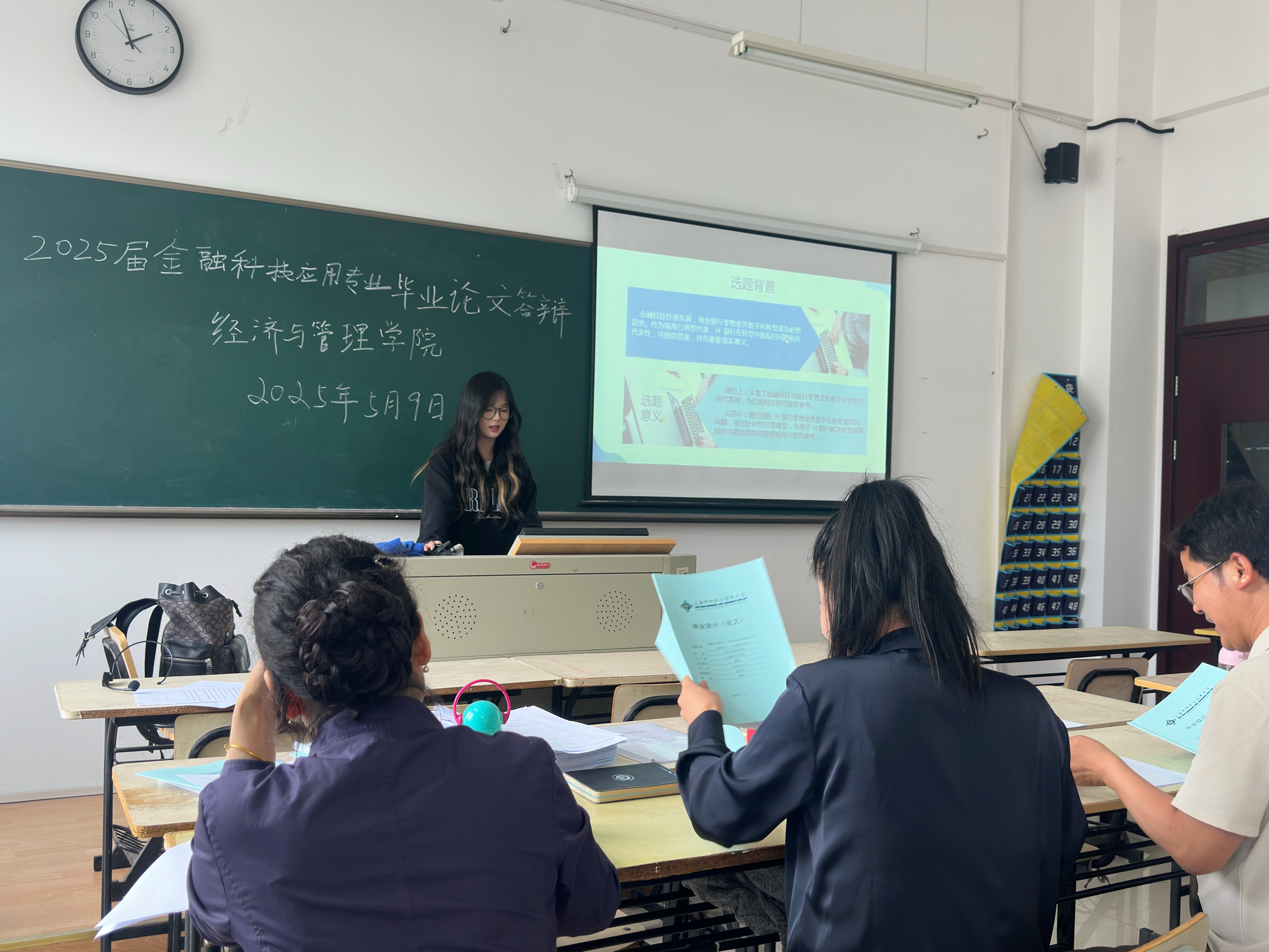 为积极响应国家对高质量人才培养的号召,深入落实学校的人才培养目标,经济与管理学院于2025年5月9日下午,在3号教学楼成功举办了2025届金融科技应用专业本科毕业论文答辩活动。本次答辩汇聚了47位毕业生,划分成4个答辩小组,在各方的紧密配合下,活动取得了圆满成功。