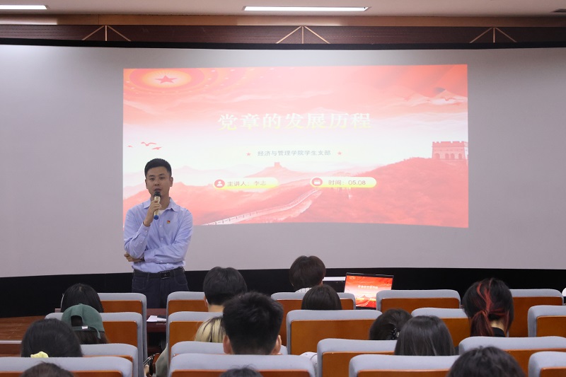 2025年5月8日晚上18:00,经济与管理学院在6号楼306教室,举行第一分党校第十七期入党积极分子培训班(中级班)第三讲《党章的发展历程》,本次党课由经济与管理学院李志老师主讲。