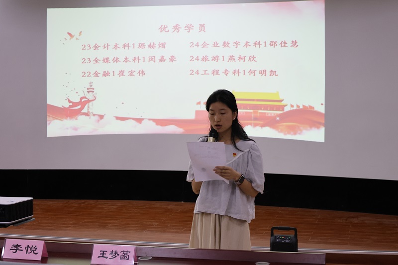 首先,由经济与管理学院学生支部组织委员王梦菡老师公布在此次中党培训班获得“优秀学员”称号的同学: