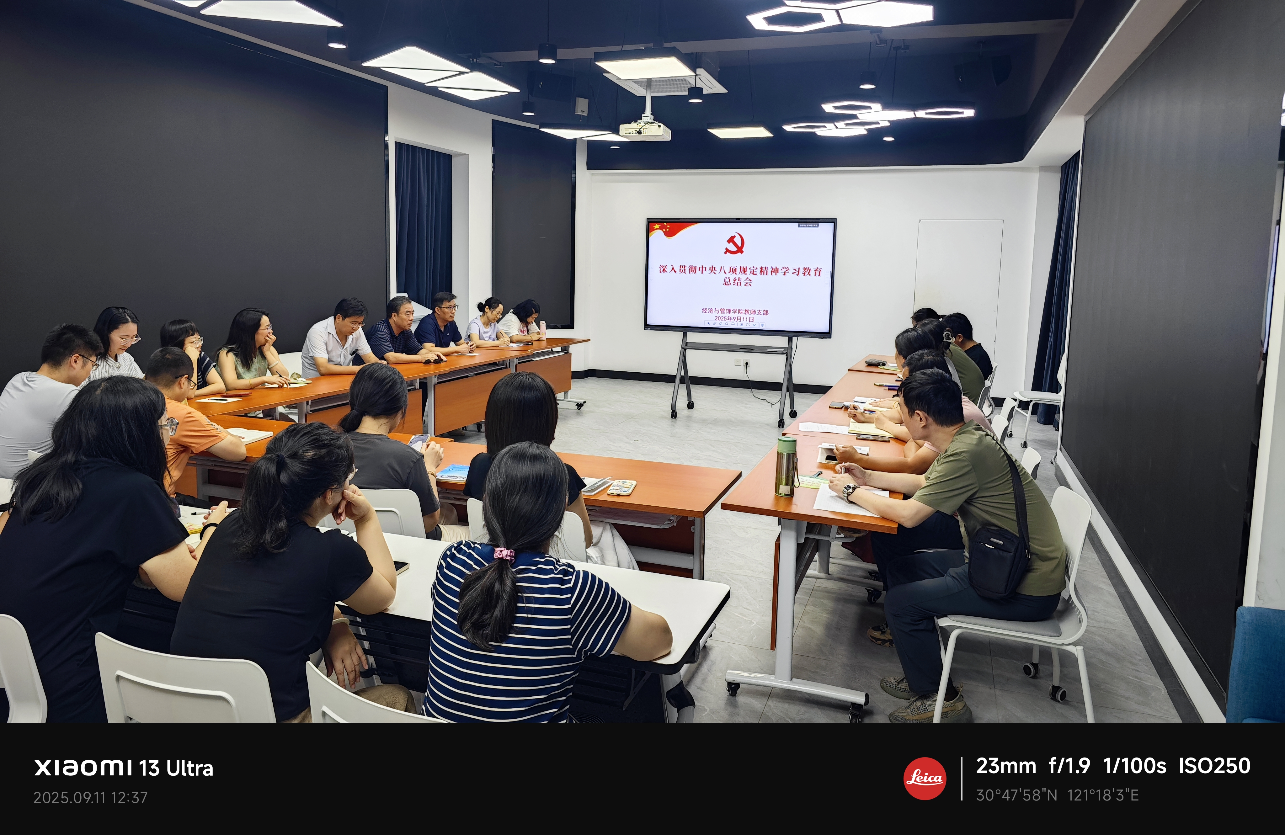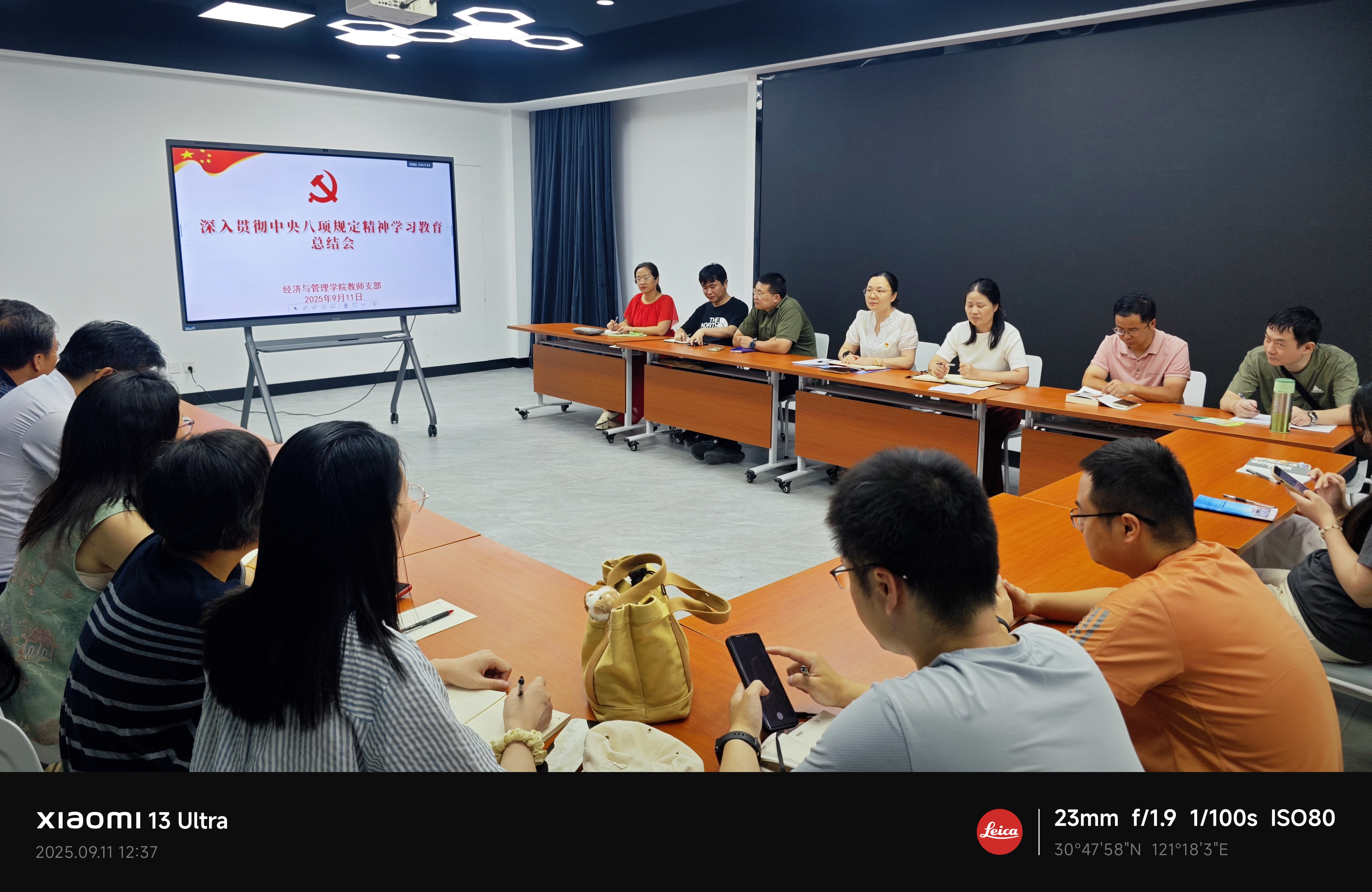 2025年9月11日,新学期初始,经济与管理学院教师支部怀着高度的政治责任感与使命感,郑重召开党员大会。本次会议主题为“深入贯彻中央八项规定精神学习教育总结会”。