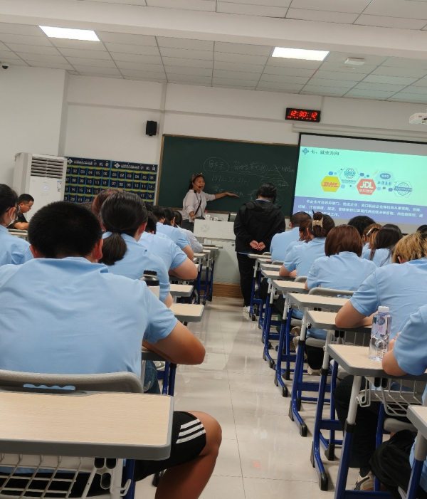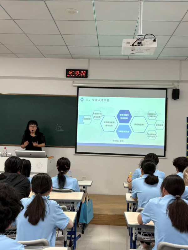 专业主任远亚丽老师首先对新生们的到来表达了热烈欢迎,随后从专业概况、师资队伍、人才培养、教学资源及国际交流等多个维度,系统介绍了现代物流管理专业的建设与发展情况。她强调,该专业已超越传统认知中的“送快递”范畴,演进为一门深度融合大数据、人工智能、物联网、供应链金融等前沿技术的综合性交叉学科。在课程设置上,专业紧跟行业变革,覆盖智慧仓储、智能运输路径规划、跨境电商物流、绿色供应链等核心方向,着力培养具备数字化思维与全球化视野的高素质复合型人才。远老师进一步展望了毕业生的多元发展路径,指出职业前景广阔,可延伸至供应链分析师、物流系统规划师、跨境电商运营经理、冷链物流项目经理等多个新兴领域。她鼓励新生主动把握技术发展趋势,将个人成长融入国家战略与行业演进的大局之中,实现自身价值与行业发展的同频共振。