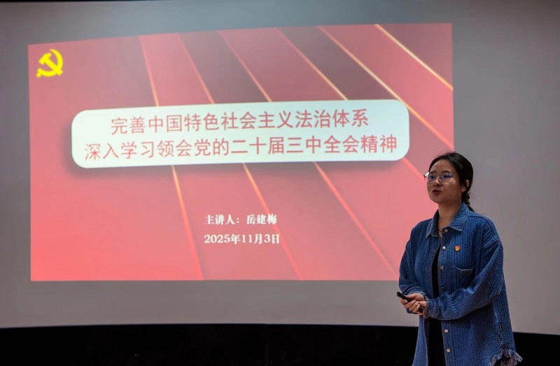 开班典礼后,岳建梅老师以《学习宣传贯彻党的二十大精神、党的二十届三中全会精神》为题讲授第一课,核心聚焦中国特色社会主义法治体系展开解读。她结合党章中关于“坚持全面依法治国”的要求以及党的二十大“推进法治中国建设”部署、二十届三中全会“完善中国特色社会主义法治体系”相关安排,清晰梳理法治体系在国家治理中的核心地位;同时立足大学生场景,举例说明如何将法治思维融入专业学习和日常行为,引导学员理解“法治是治国理政的基本方式”,更明确要以法治意识规范自身,让理论学习落地为行动自觉。