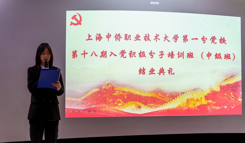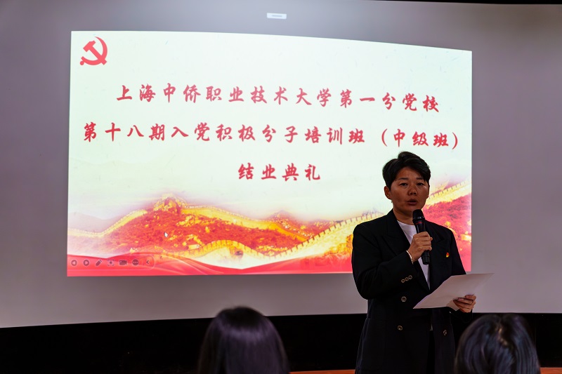 2025年11月13日18:00,经济与管理学院联合建筑工程学院于6号楼306教室召开上海中侨职业技术大学第一分党校第十八期入党积极分子培训班(中级班)结业典礼。本次结业典礼由经济与管理学院沈越同学主持。经济与管理学院党总支组织委员李玲老师、经济与管理学院党总支纪律委员侯培森老师、建筑工程学院直属党支部组织委员吴雨桐老师、建筑工程学院直属党支部宣传委员苑佳恒老师出席本次结业典礼。