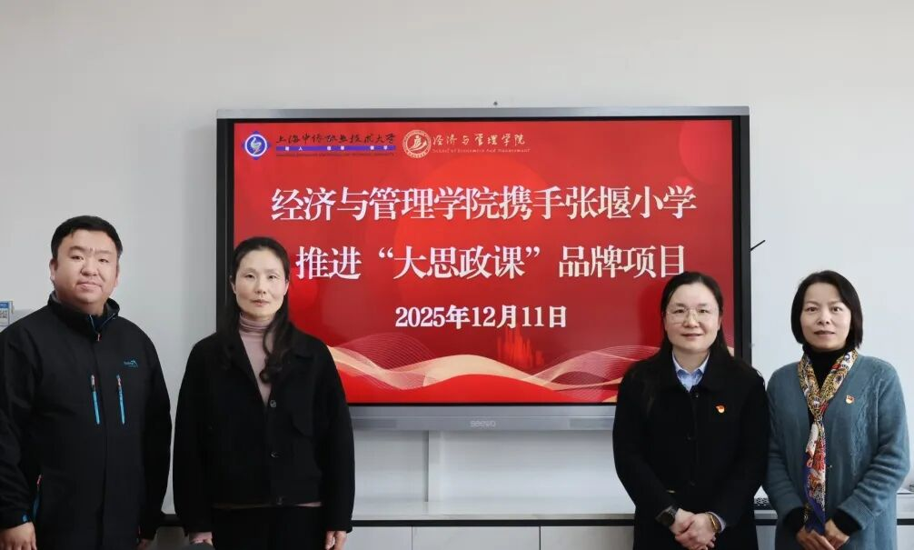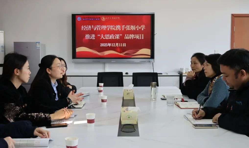 2025年12月11日,经济与管理学院和金山区张堰小学在张堰小学会议室联合开展“大思政课”品牌项目专项交流研讨。张堰小学党支部书记、校长施慧丽、党支部副书记王旭青、副校长张熹,经济与管理学院党总支书记杨慧,“大爱金山”小浪花大学生志愿者代表共同参与此次交流。
