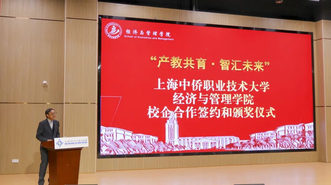 为深入推进产教融合、校企协同育人,2025年12月16日,上海中侨职业技术大学经济与管理学院在图书馆学术厅举行“产教共育·智汇未来”2025年校企合作签约与颁奖仪式——暨第二届校企合作峰会。来自各领域的企业家代表,校院领导,教师和学生代表共计500余人齐聚一堂,共商校企合作新机制,共绘高素质应用型人才培养新蓝图。本次大会企业阵容规格高、行业代表性强,参会的33家企业中,22家由企业董事长亲自到场,其余11家为总经理、行业专家,充分体现了企业界对经济与管理学院校企合作工作的高度重视。其中,上海宽度科技固定资产超百亿、上海构美年带货金额102亿、山海八珍堂产值过百亿、中科振华集团投资管理金额过112亿。为本次校企合作注入了强有力的产业资源与发展动能。