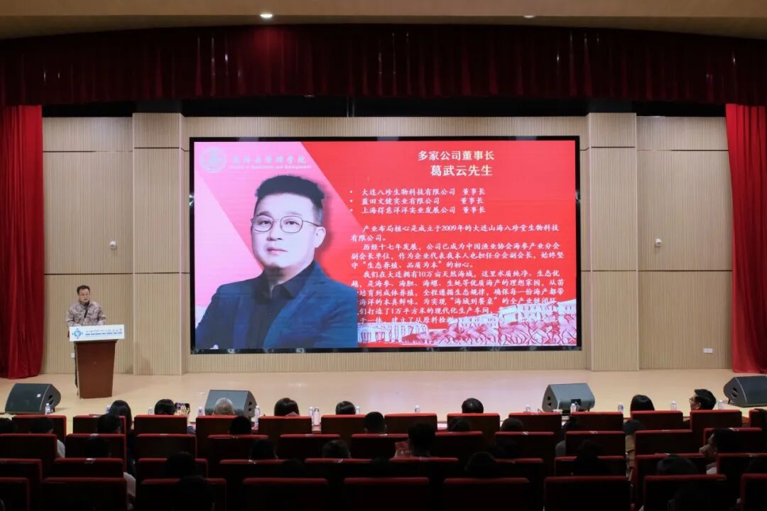 山海八珍堂董事长葛武云结合企业多年经营实践,重点分享了对产业学院建设的深入思考,经济与管理学院即将成立的产业学院应以行业真实需求为导向,在课程共建、实践实训和人才评价机制等方面持续创新。会上,葛武云董事长正式受聘担任新学期产业学院筹备委员会主任和学院客座教授,将深度参与产业学院规划与运行,推动校企合作向体系化、长效化迈进。