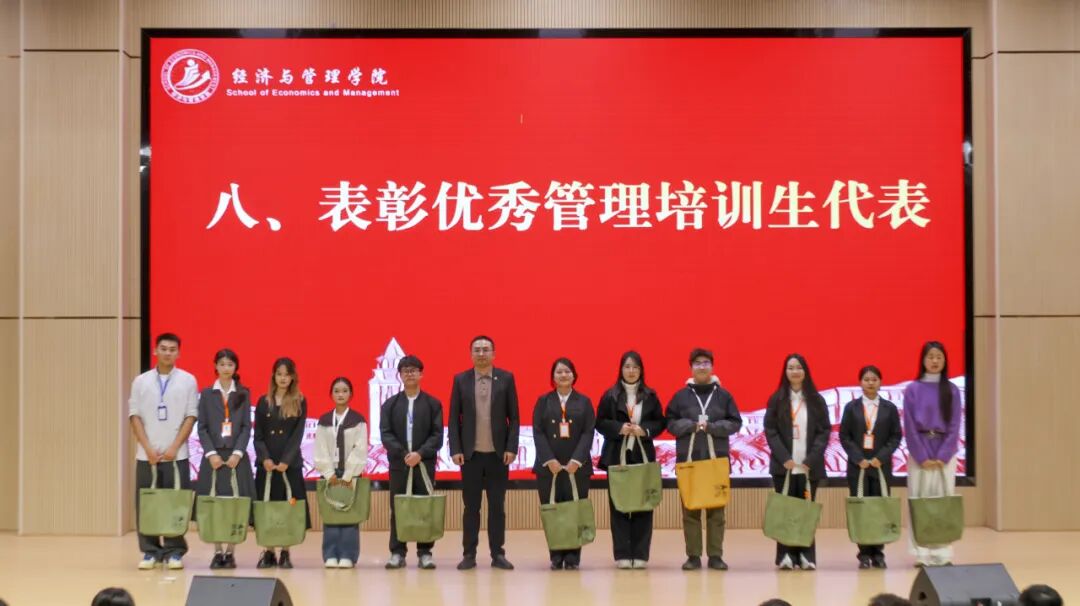 学院学生的企业实践成绩成为大会又一亮点。金融科技应用专业学生屠世谦、现代物流管理专业学生刘云飞作为优秀学生代表上海前景网络公司登台领奖。他们在校企合作管理培训生导师指导下,深度参与企业真实项目实践,参与豆包核心部件开发与高校教育智能体项目并验收通过,成为学院“产教共育、以用促学”的生动缩影。随后,全体优秀管培生代表上台接受院领导和导师的颁奖。