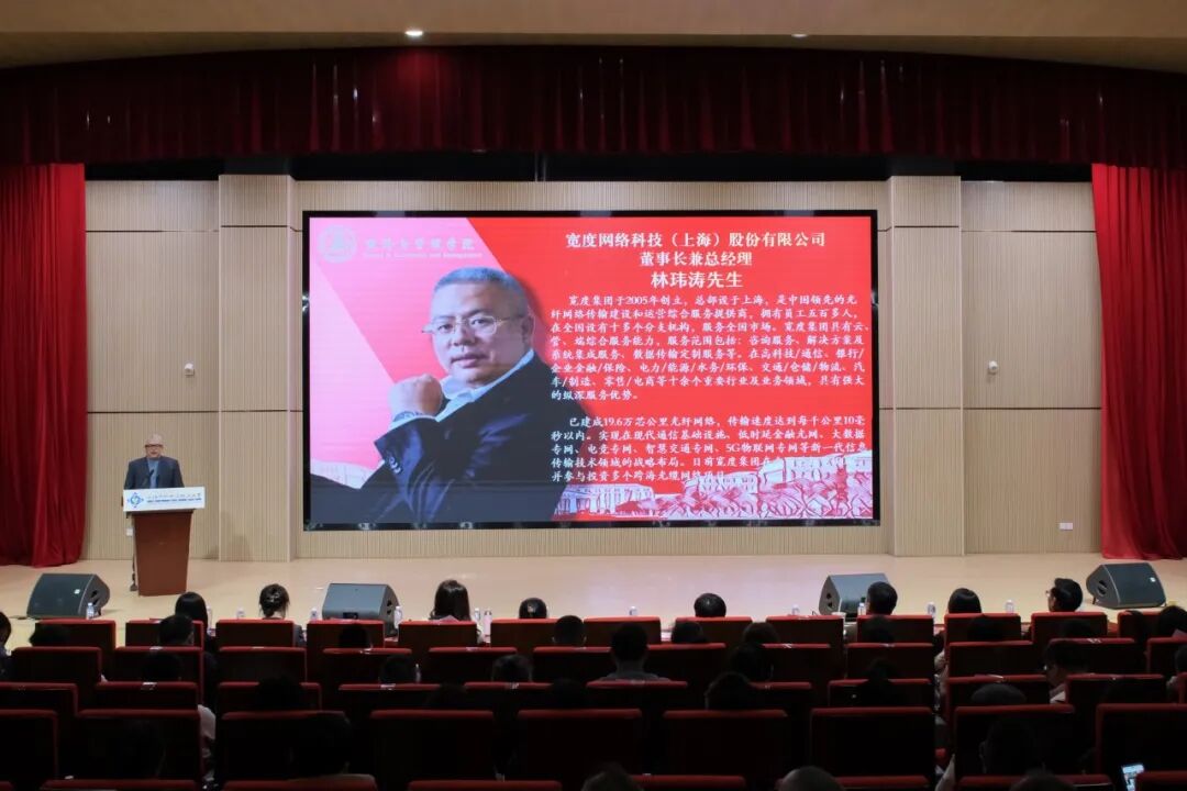 上海宽度科技集团董事长林玮涛从科技与金融结合发展的角度,阐述了企业对复合型、实践型人才的现实需求,承诺将真实业务场景和行业标准引入教学,提升学生职业竞争力。