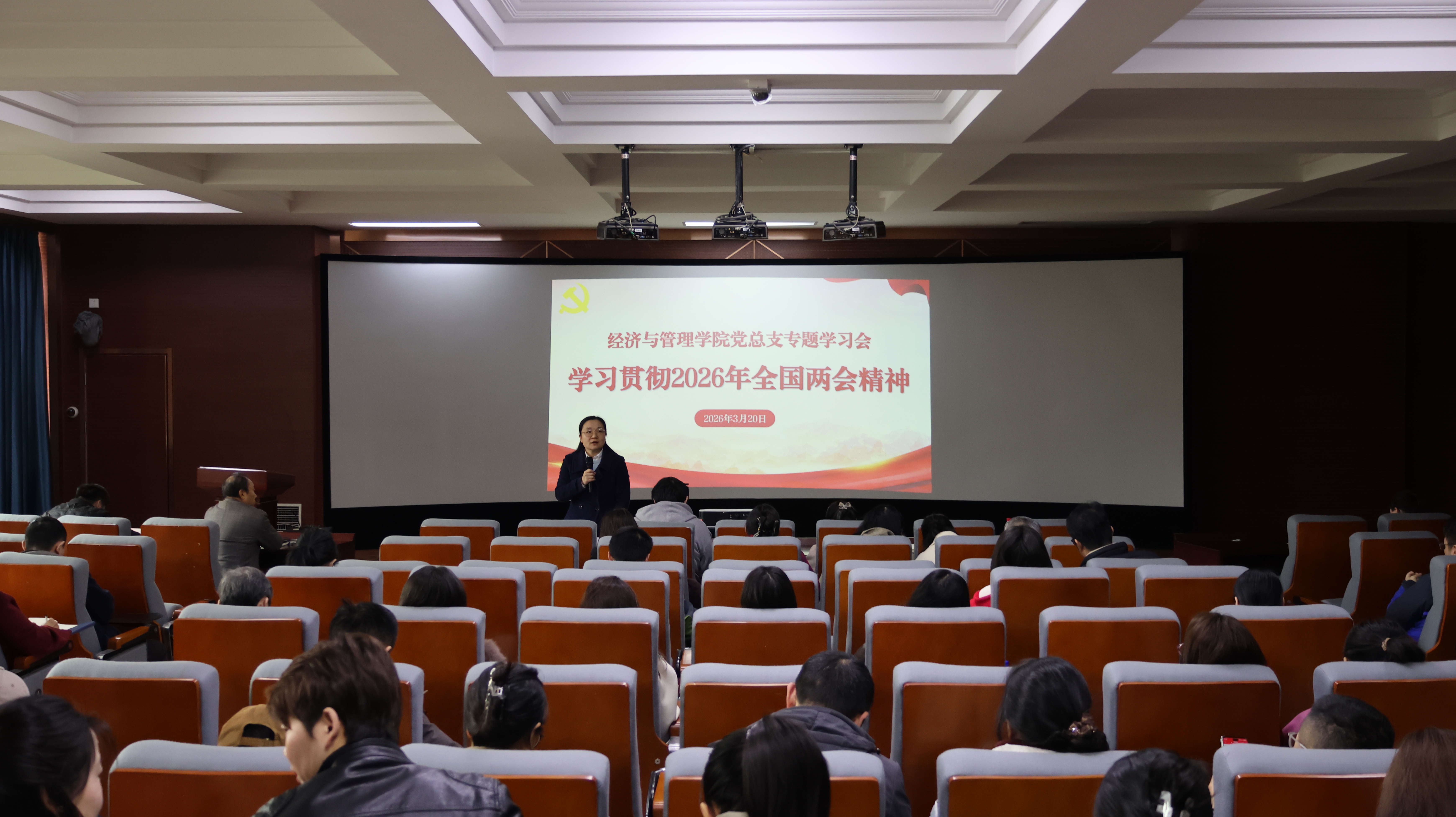 党总支书记杨慧主持召开党总支专题学习会,传达学习2026年全国两会精神,并就学院党建工作提出要求。她指出,要深入学习贯彻习近平新时代中国特色社会主义思想,巩固拓展主题教育成果,扎实推进基层党组织建设。她强调,要将党建工作与学院中心工作深度融合,以高质量党建引领高质量发展,要求全体党员教师在教书育人、管理服务中发挥先锋模范作用,筑牢意识形态阵地,营造风清气正的育人环境。