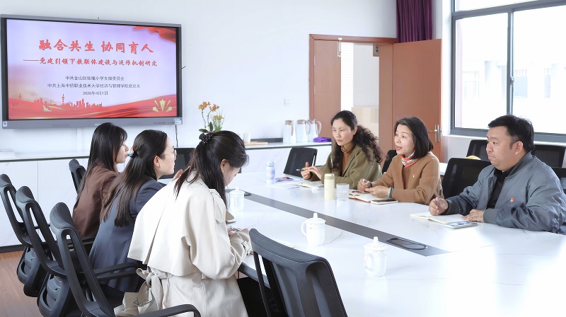 为深入贯彻落实新时代教育方针,深化党建引领下的大中小一体化育人体系建设,探索基础教育与职业教育协同发展的有效路径,4月1日,经济与管理学院与张堰小学,以“融合共生 协同育人——党建引领下教联体建设与运作机制研究”为主题,召开专题共建会议,进一步深化党建联建,共同推进关工委和教联体组织建设工作。经济与管理学院党总支书记杨慧、团委书记曾宏、团委副书记杨琳靖,张堰小学党支部书记、校长施慧丽、党支部副书记王旭青、副校长张熹双方相关负责人参会。